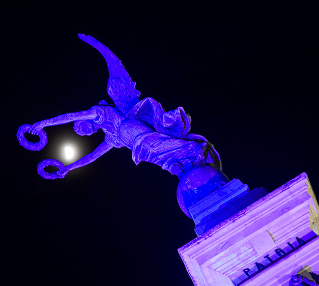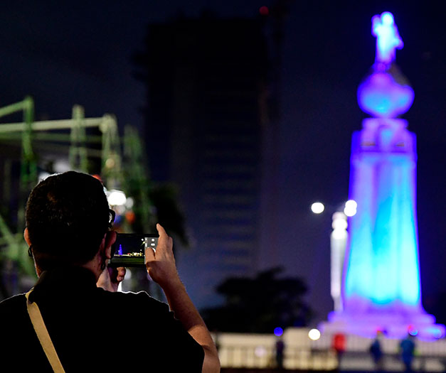 Como un reconocimiento al Día del Fotógrafo Salvadoreño, la Alcaldía de San Salvador iluminó de color azul la plaza Libertad, el monumento a la Constitución y el monumento al Divino Salvador del Mundo.