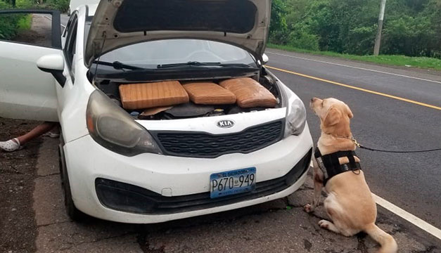 El can antidrogas "Manolo" olfateó la droga en el vehículo placas P-670949, conducido por Ciro Josué García Cisneros, de 31 años, según el informe policial.