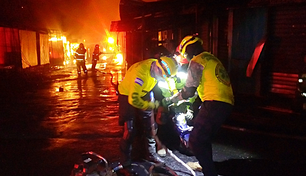 Brigadistas de Cruz Verde Salvadoreña también apoyaron para controlar las llamas y en el rescate de personas atrapadas en edificios cercanos que ha esta hora están custodiados por agentes de la Policía Nacional Civil y efectivo del ejército.