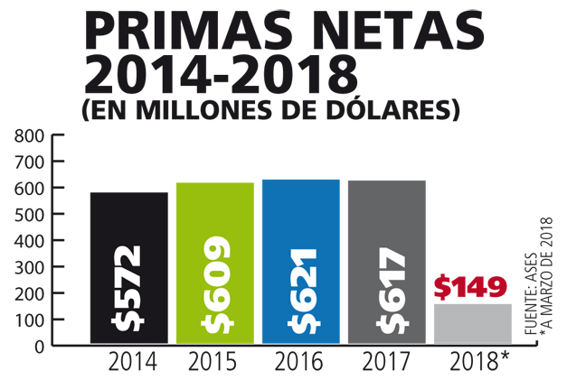 La gremial presentó este lunes un informe sobre el comportamiento del sector en los últimos cinco años y los resultados hasta marzo pasado, en el cual destacó que al cierre del primer trimestre de 2018 la industria sufrió una caída del 2 %, ya que pasó de $152 millones en primas netas a $149 millones, una reducción de $3 millones.