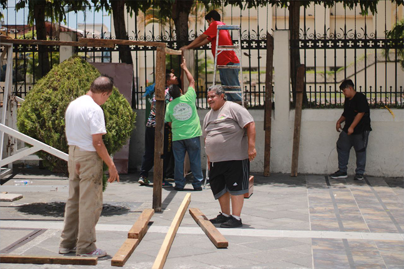 Catedral Metropolitana reveló este domingo en la tarde que dió inicio con los preparativos para montar la estructura de la tradicional "bajada" afuera del templo de la iglesia católica, en el centro de San Salvador.