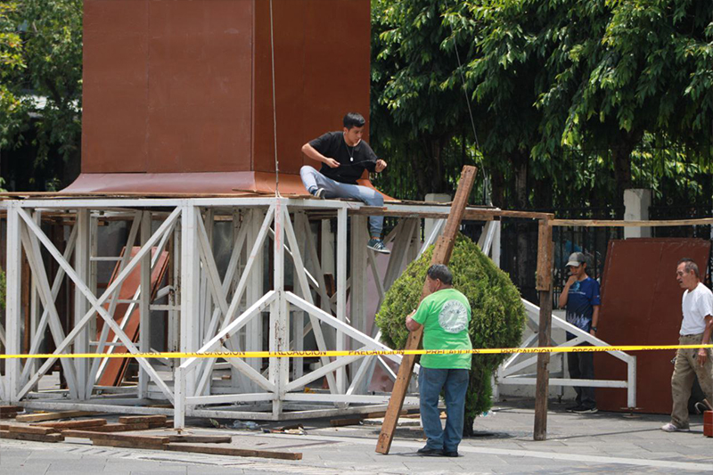 "Oficialmente ha iniciado el montaje del trono del Divino Salvador del Mundo donde se transfigurará este martes 5 de agosto", dice la publicación de Catedral Metropolitana en la red social Facebook, que se acompaña de fotografías, donde se observa la colocación de una estructura alta con un mundo en la cúspide.