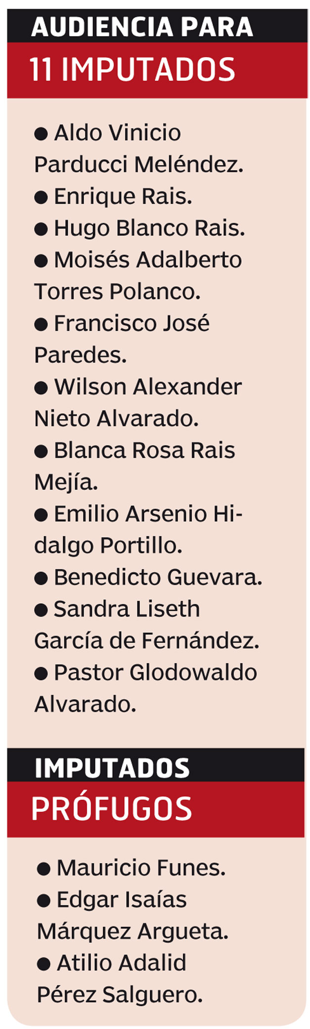 También se mencionaron los casos de los empresarios Enrique Rais y Hugo Blanco Rais, quienes enviaron a sus abogados para que los representaran y ejerzan la defensa por los señalamiento de haber entregado dinero, vehículos y favorecido con 96 vuelos por un monto de $1.3 millones en tres años.