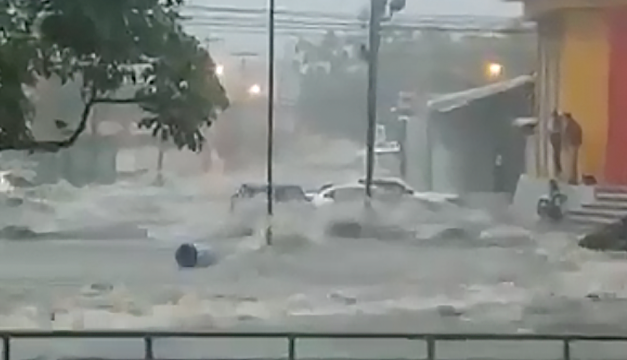 Según videos compartidos por usuarios de redes sociales y medios de comunicación locales, las lluvias que en su mayoría afectan la zona norte y occidente del país, ocasionó que algunos conductores se quedaran atrapados, y otros casi eran arrastrados por la corriente de agua.