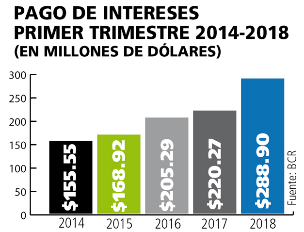 El pago de intereses entre 2005 y 2015 no superó los $168.92 millones, pero en 2016, el Gobierno destinó $205.29 millones y en 2017 desembolsó $220.27 millones.