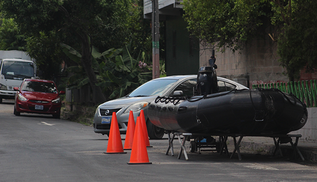 Personal de la fuerza armada cuidaba una balsa en la colonia Santa Lucía. En las primeras inundaciones la FAES usó una para sacar atrapados. Foto DEM-Gabriel Aquino