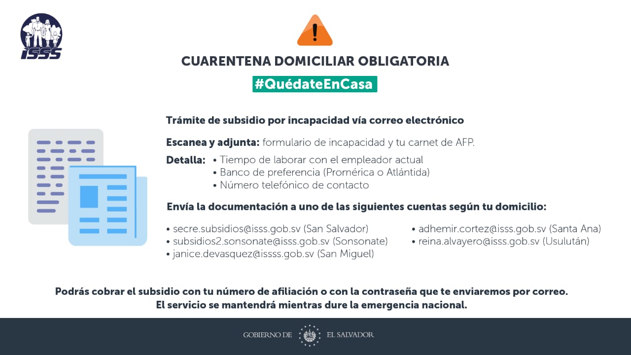 Este miércoles divulgó las direcciones electrónicas disponibles para que las personas  pueden iniciar el proceso para el correspondiente pago del subsidio. Para ello se debe enviar escaneado el formulario de la incapacidad y el carné de la AFP.