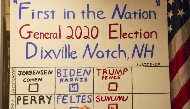El ex vicepresidente de Estados Unidos, Joe Biden, se llevó los cinco votos emitidos en Dixville Notch, un pequeño municipio de New Hampshire a lo largo de la frontera entre Estados Unidos y Canadá que se encuentra entre las primeras localidades del país en dar a conocer su preferenciaa presidencial.