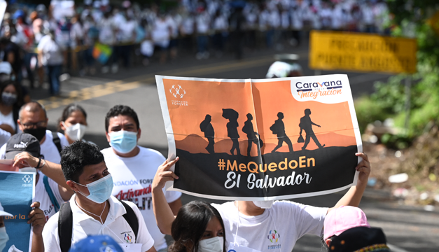 Esta caravana al revés y por la integración simboliza el deseo de millones de salvadoreños que quieren quedarse en el país, pero que necesitan de proyectos integradores que realmente impacten en su futuro y generen verdaderas salidas de la pobreza". dice un comunicado de Fundación Forever, promotora de la marcha.Usando camisetas blancas y gritando a todo pulmón la frase "apoyemos la integración", caminaron desde la frontera un par de kilómetros en dirección al interior del país, para simbolizar su deseo de no migrar.