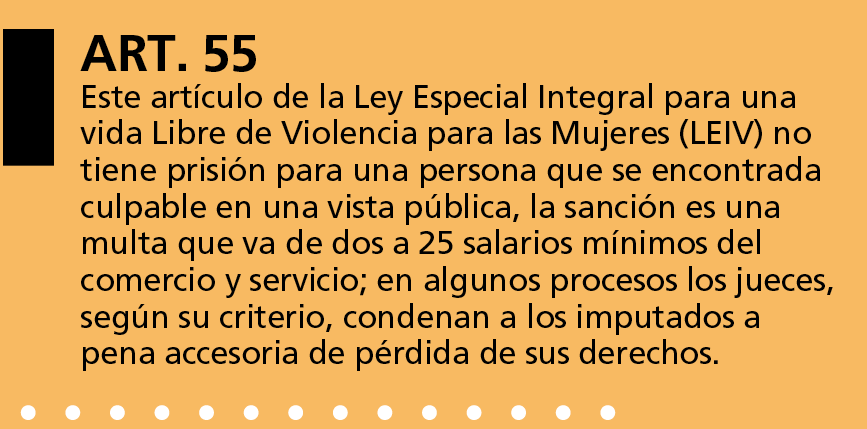 A finales de julio, Ormusa criticó que los delitos cometidos contra mujeres tienen un castigo leve y poco ejemplarizante y señaló que solo el 5% de los casos judicializados llegan a una vista pública y no todos son condenados.