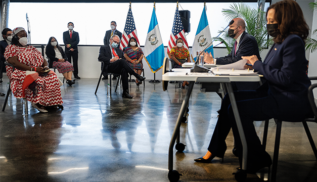 El encuentro que sostuvo este lunes la vicepresidenta de EEUU, Kamala Harris con el presidente guatemalteco Alejandro Giammattei concluyó con un anuncio claro que para abordar las causas económicas, de gobernanza y de seguridad que obligan a los migrante a huir de Guatemala, Honduras y El Salvador, deberán combatir en paralelo la corrupción y la trata de personas en la región.