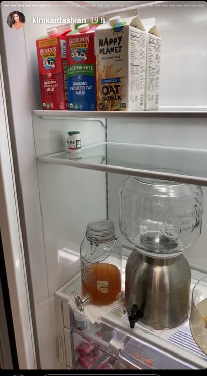"Vi un montón de comentarios de personas que se preguntaban cómo alimentaba a mis 4 hijos y como ustedes se mueren por saber, ¡aquí hay un pequeño vistazo dentro de nuestro refrigerador principal lleno de muchas frutas y verduras!", escribió en una publicación Kim.