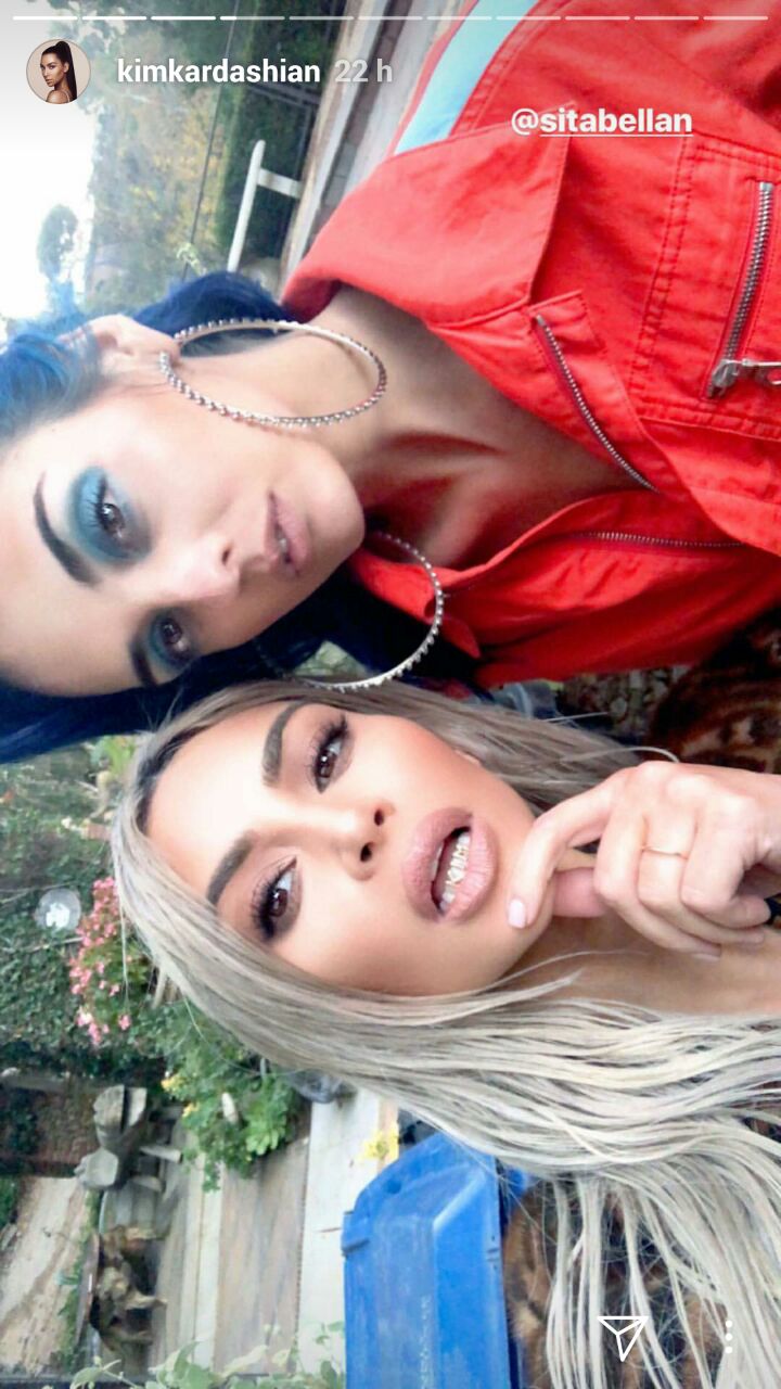 Kim Kardashian presumió a sus seguidores de Instagram su ‘grill’ de oro entre sus dientes, mientras se hacía un selfie con la modelo española Sita Abellán.