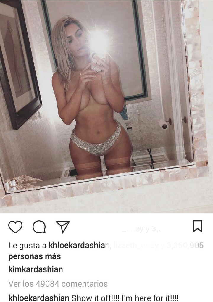 La fotografía ha recibido más de 3 millones de me gusta y miles comentarios, entre ellos el de su hermana Khloé. "Muéstralo. Yo estoy aquí para eso!!!!", escribió.