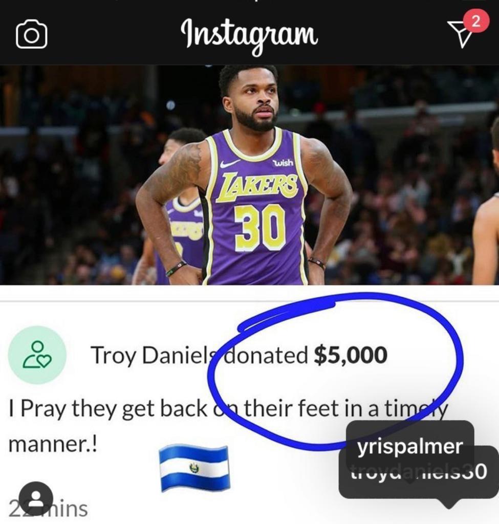 El jugador de la NBA, Troy Daniel, es uno de los más recientes contribuyente a la campaña por los salvadoreños y donó $5,000.