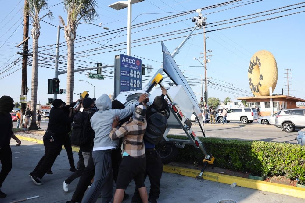 La madrugada del domingo, la Policía reportó que detuvo a varias personas tras declarar una reunión en el centro de Los Ángeles como asamblea ilegal, y en Paramount, tres personas acusadas de agredir a agentes fueron arrestadas durante la noche.