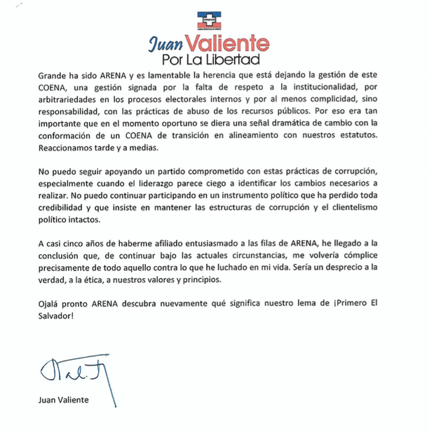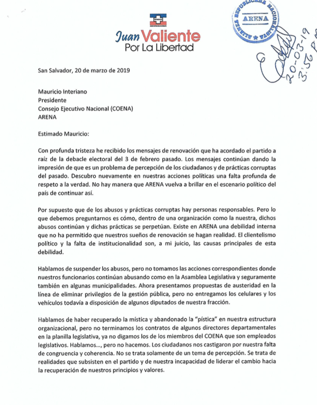 "No puedo seguir apoyando un partido comprometido con estas prácticas de corrupción... insiste en mantener las estructuras de corrupción y el clientelismo político intactos", dice Valiente, quien al final de su periodo legislativo en 2018 desistió de la reelección.
