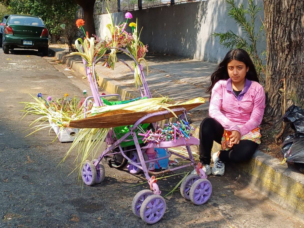 A pocos metros está una niña que se llama Melany Guerrero, quien cuenta cómo heredó la tradición desde su abuela y su madre como artesanas de las palmas.