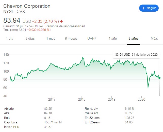 Por su parte, Chevron, que ha sido lastrada por cargas vinculadas a la caída de los precios del petróleo y a sus operaciones en Venezuela, reportó el viernes una pérdida neta de $8,300 millones en el segundo trimestre.