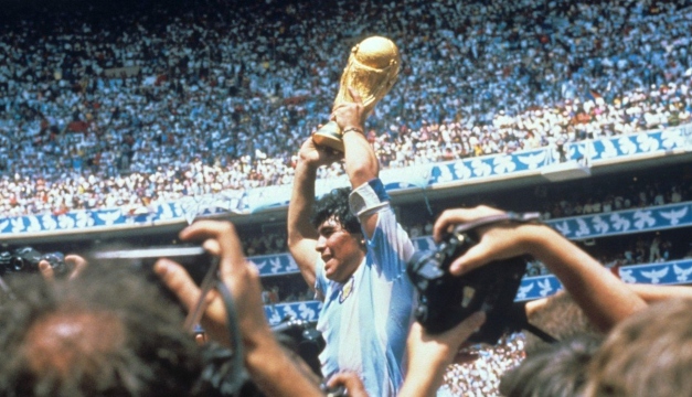 Pero la leyenda Maradona se contaría por todo lo alto en América, con el título que ganó con la Selección Argentina en el Mundial de México 1986. Sus goles a Inglaterra, el primero con la mano, la de Dios, y el segundo con el Mejor gol del Siglo XX, cuando “la va a tocar para Diego, ahí la tiene Maradona, lo marcan dos, pisa la pelota Maradona, arranca por la derecha el genio del futbol mundial, y deja el tercero y va a tocar para Burruchaga... Siempre Maradona! Genio! Genio! Genio! ta-ta-ta-ta-ta-ta-ta... y Goooooool... Gooooool... Quiero llorar! Dios santo! Viva el futbol! Golazo! Diego! Maradona! Es para llorar perdonenme... Maradona, en una corrida memorable, en la jugada de todos los tiempos... barrilete cosmico... ¿de qué planeta viniste? Para dejar en el camino tanto inglés, para que el pais sea un puno apretado, gritando por Argentina.... Argentina 2 - Inglaterra 0... Diegol, Diegol, Diego Armando Maradona... Gracias, Dios, por el fútbol, por Maradona, por estas lágrimas, por este Argentina 2 - Inglaterra 0...”