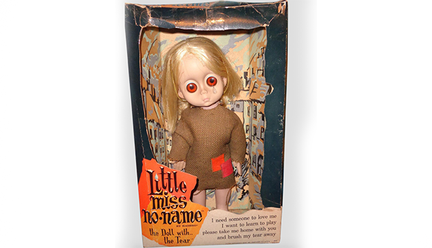 Además hay una muñeca harapienta, con ojos melancólicos y la mano extendida como pidiendo: se llama "Little Miss No Name", "Señorita sin nombre".
