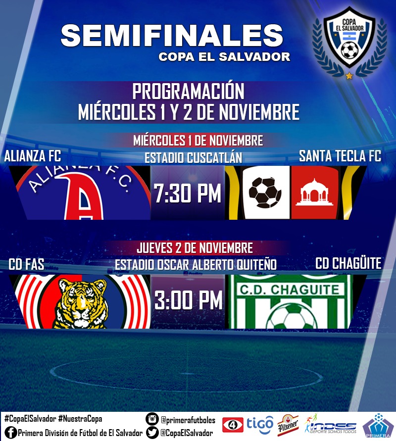 Este día se realizó el sorteo de las semifinales de Copa El Salvador luego de que se conocieran los cuatro equipos que pelearán por los dos boletos a la final. Los emparejamientos son Alianza-Santa Tecla y FAS-Chagüite.