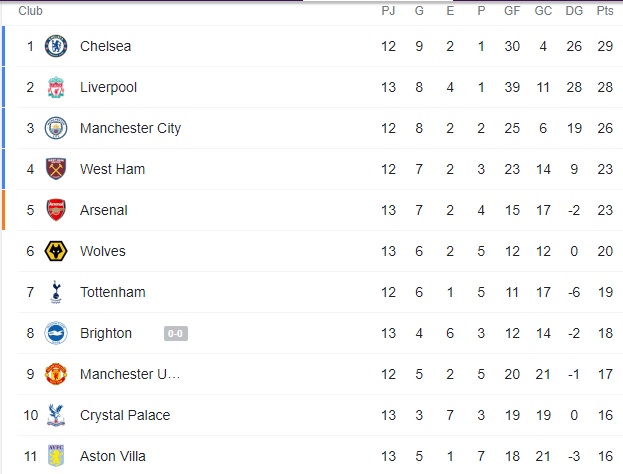 El Manchester City, por su parte, podría recuperar esa segunda plaza si el domingo gana en casa al West Ham (4º).