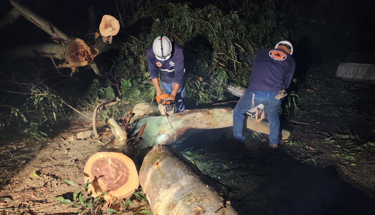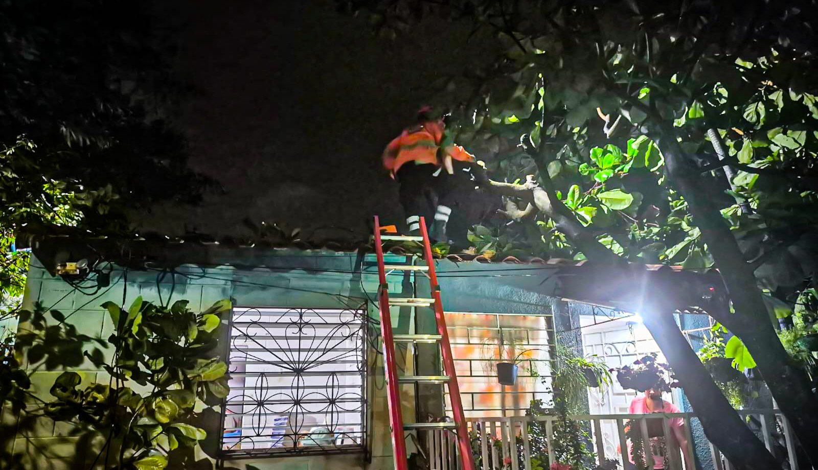 Cruz Verde, junto a la Dirección General de Protección Civil, también atendió la remoción de un árbol caído sobre la calle a Mariona, en las cercanías del Centro Escolar Ángela de Soler.