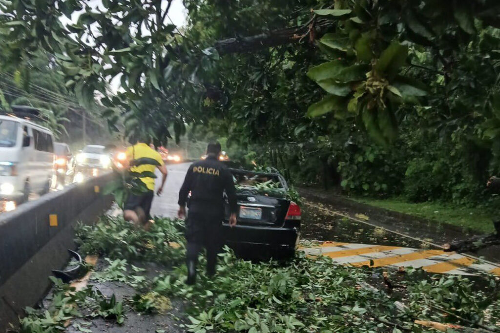 En el kilómetro 60 de la carretera Panamericana, en el municipio de Santa Ana Centro, otro árbol cayó sobre un vehículo y restringió el tráfico por varias horas.
