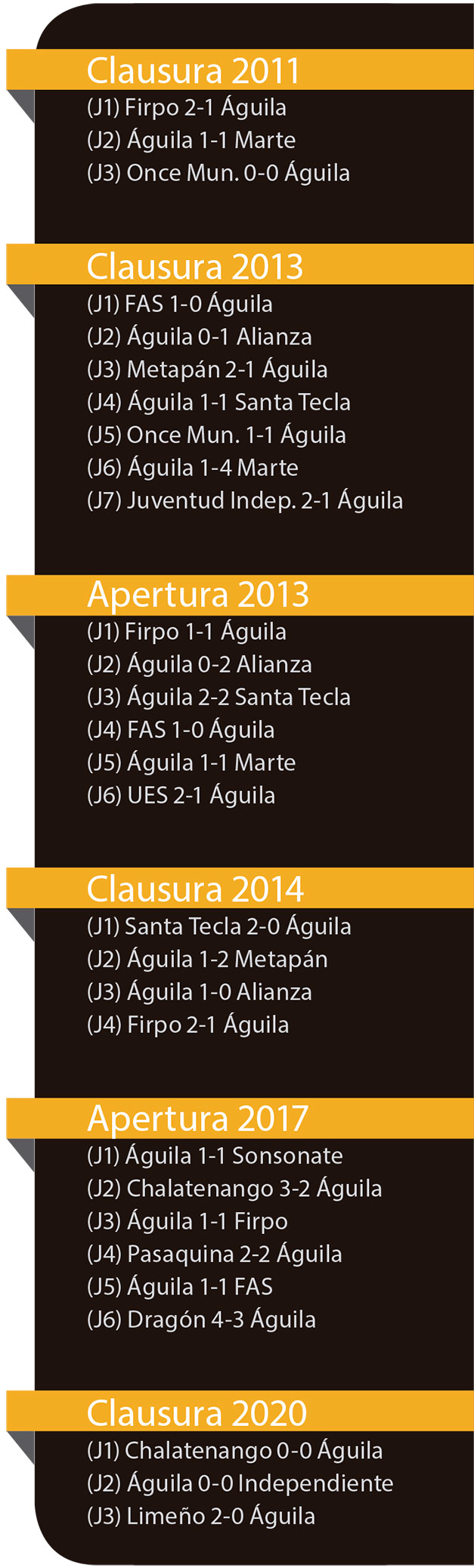 Esta situación es idéntica a la vivida por el equipo en el Clausura 2011 en el que perdió contra Firpo 2-1 (J1) y empató en las siguientes dos jornadas ante Atlético Marte 1-1 y Once Municipal 0-0.