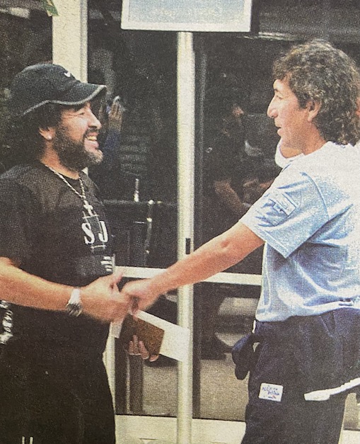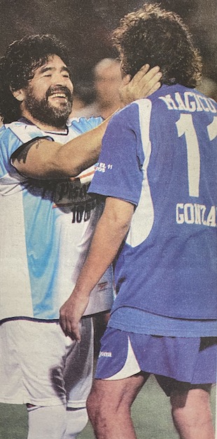 Al terminó del partido, Maradona y el 'Mágico' se estrecharon en un fuerte abrazo y en forma espontánea el astro argentino se despojó de su camiseta y se la entregó al salvadoreño quien le correspondió en igual forma. El gesto confirmó una vieja amistad iniciada en la década de los ochenta cuando ambos jugaban en España, Maradona en el Barcelona y González en el Cádiz.