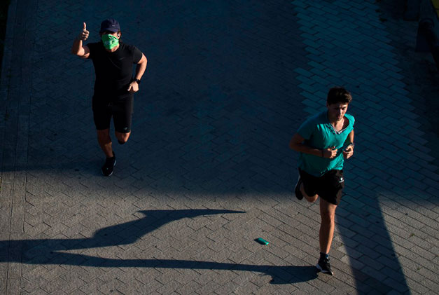 Las personas corren en Madrid el 2 de mayo de 2020, durante algunas horas permitidas por el gobierno, por primera vez desde el comienzo de un bloqueo nacional para prevenir la propagación de la enfermedad COVID-19. AFP