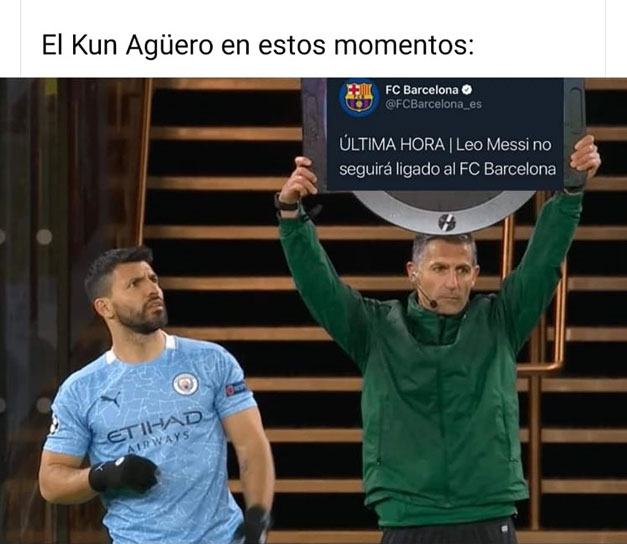 La tristeza ha inundado los corazones de los seguidores azulgrana, pero también, ha sido el origen de una gran cantidad de memes en los que a parte de Messi han señalado a Sergio Agüero como protagonista.