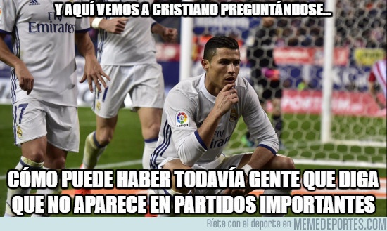 En los memes se puede resaltar también de que Cristiano finalmente está apareciendo en los momentos cruciales del los blancos. En ellos se los usuarios dan prácticamente ganada la Liga al Madrid, que sólo necesita un punto para asegurarse la Liga ante el Málaga en la Rosaleda.
