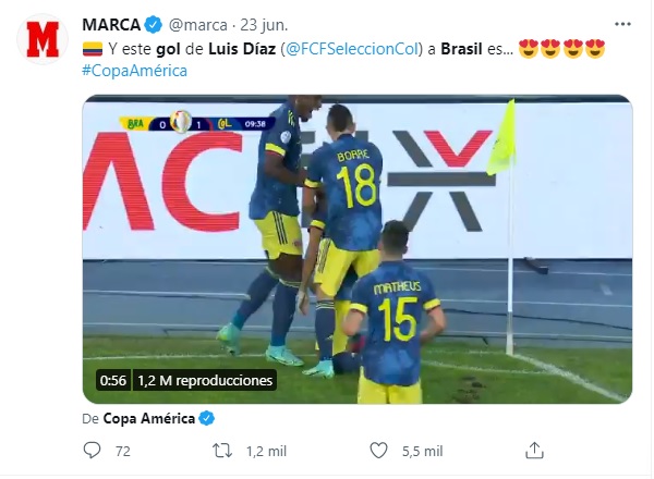 Clic en la imagen para ver el golazo de Luis Díaz ante Brasil por Copa América