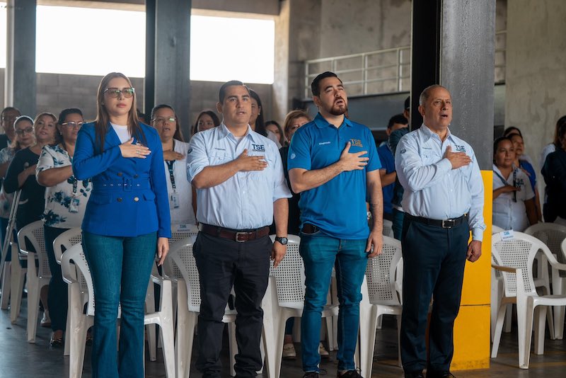 Al acto cívico asistieron los magistrados propietarios Francisco Rubén Alvarado Fuentes, Cecilia María Marroquín Castro, Karla Cecilia Guandique Miranda, Sofía Guadalupe Paniagua Meléndez y la presidenta del TSE, Roxana Soriano.