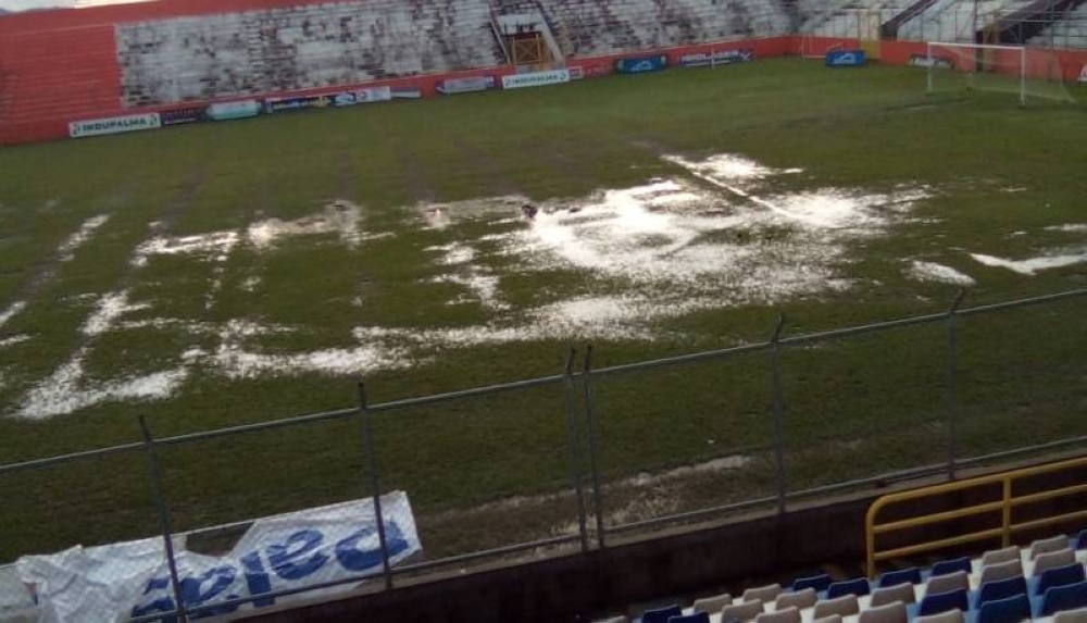En las imágenes difundidas en redes sociales se puede observar una cancha del Barraza inundada que no ha permitido la realización del partido, por lo cual, el encuentro se trasladó, de acuerdo a las cuentas oficiales de la competencia, al estadio Municipal de Quelepa.
