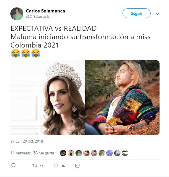 “Kurt Cobain versión colombiana”, “¿Kurt Cobain, eres tu?", "Este misógino pelotudo no se parece en nada a Cobain. Ni el arroz con leche puede tocar y cantar este perro", "La nueva señorita miss Colombia", escribieron algunos de sus seguidores.
