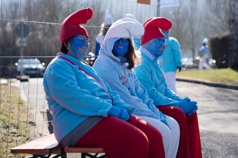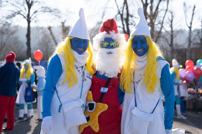 En total, 2.762 participantes se pintaron de azul y calzaron gorros blancos o rojos en la ciudad de Lauchringen, en la frontera germano-suiza, anunció en Facebook la asociación "Dä Traditionsverein", que organizó el evento.