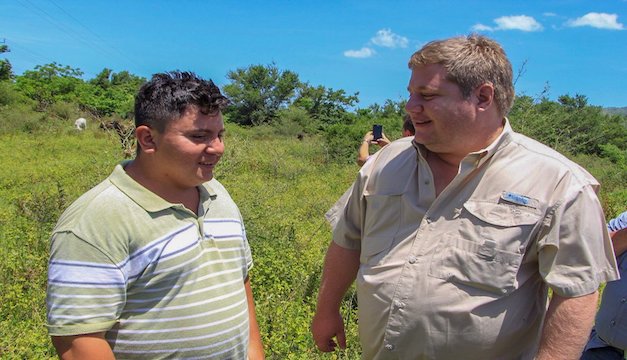 El ministro Pablo Anliker conversa con el propietario del terreno donde murieron las vacas.