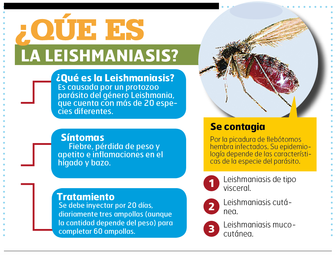 Leishmaniasis es una enfermedad transmitida por un tipo de mosca pequeña conocida como “jején”, cuyo nombre es Lutzomyia longipalpis, de color marrón claro, con cuerpo cubierto de pelo y que pica de noche, pero a diferencia de otros mosquitos no emite zumbido al volar; se presenta con mayor frecuencia en países con zonas selváticas y tropicales.