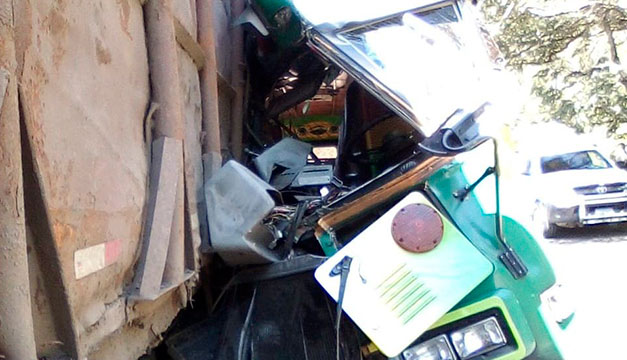 Una mujer de 50 años perdió sus miembros inferiores en un aparatoso choque de un autobús de la ruta 116 contra una rastra cargada de desechos sólidos, ayer.