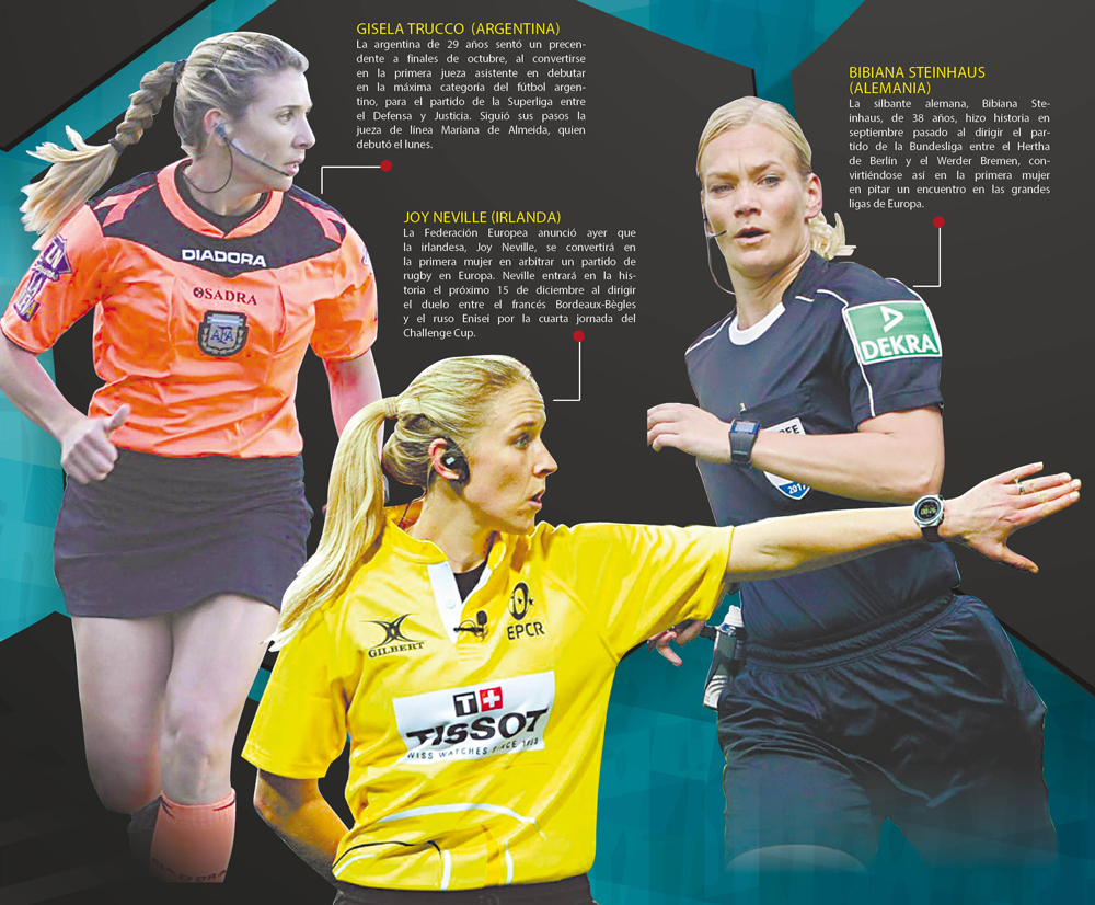 A finales de octubre, un país latino, con una preponderante cultura machista escudado en la fiebre que despierta el fútbol, también dio un paso importante al designar a Gisela Trucco, de 29 años, como parte de la terna arbitral que dirigió el partido de la Superliga entre el Defensa y el Justicia, convirtiéndose así en la primera jueza asistente en debutar en la máxima categoría del fútbol argentino.