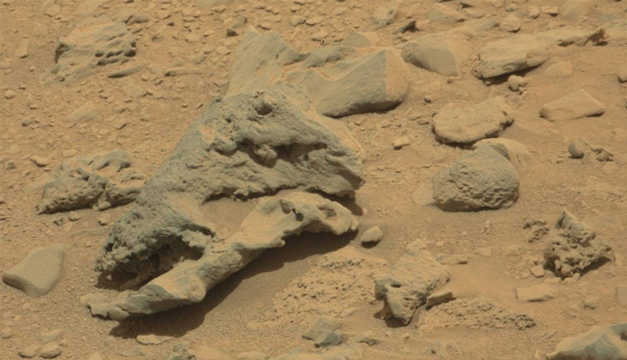Una nueva imagen sale a la vista pública, la cual muestra un posible cráneo de un dinosaurio. Lo impactante de este descubrimiento es que la fotografía "de mil millones de píxeles" fue captada en Marte por una sonda espacial de la NASA.