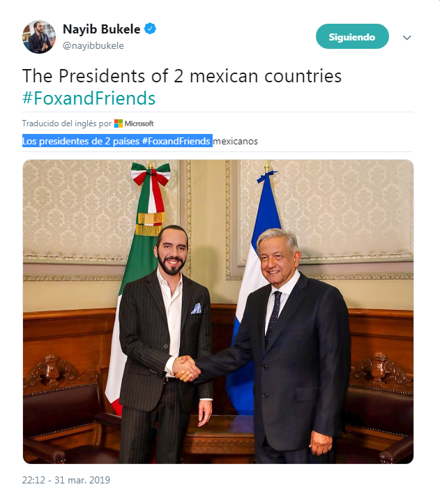 El presidente electo, Nayib Bukele, tomó con humor, el "error" que tuvo ayer, la cadena de noticias, Fox News, quien llamó a nuestro país, Guatemala y Honduras, "países mexicanos".