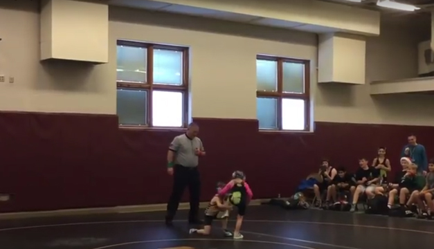 Jash Lewis, un pequeño de dos años, corrió a defender a su hermana mayor, de 4 años, en el momento en que ella afrontaba su primera contienda de lucha libre, disciplina que practica la menor.