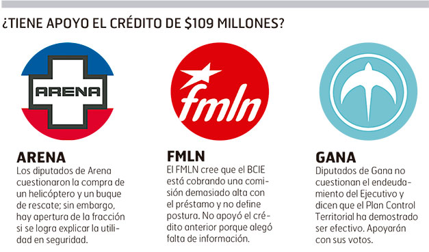 Otros $25.9 millones serán para equipo e infraestructura de videovigilancia; $17.4 millones para equipo táctico; $15.5 millones de modernización hospitalaria; y $3.3 millones de administración, supervisión, auditoría y una comisión para el banco. Este último monto fue criticado por la diputada Yanci Urbina, del FMLN, debido a que “hay sentencias emitidas por la Sala de lo Constitucional sobre el uso de las comisiones de recargo y cómo el país accede a pagarlas”. “¿Por qué incluye el banco estas condiciones para el préstamo, si ya recibe una tasa de interés comercialmente alta?”, cuestionó.