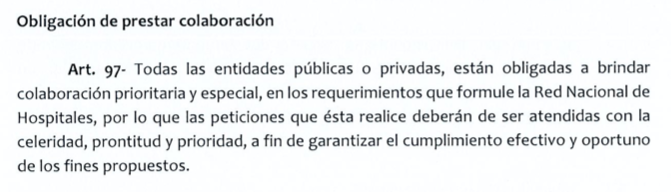 Una nueva que será aprobada en las próximas horas obligará a los privados a colaborar con la Red Nacional de Hospitales en los requerimientos que esta formule y sus peticiones deberán ser "atendidas con la celeridad, prontitud y prioridad" para el cumplimiento "efectivo y oportuno" de los objetivos.