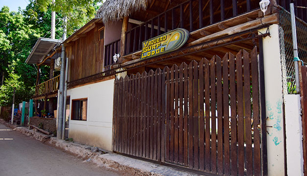 Fachada de Vaquero Surf Lodge, un hostal ubicado en la playa El Tunco, que atiende en su mayoría a los turistas de Brasil. / Diego García
