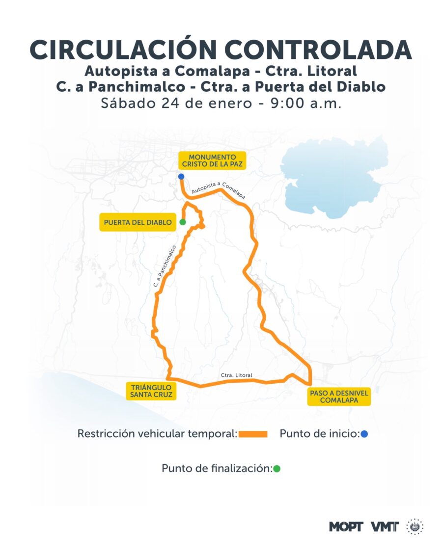 Luego se incorporará en la calle a Panchimalco hasta llegar a la Puerta del Diablo. Esta circulación controlada se tiene prevista desde las 9:00 de la mañana.